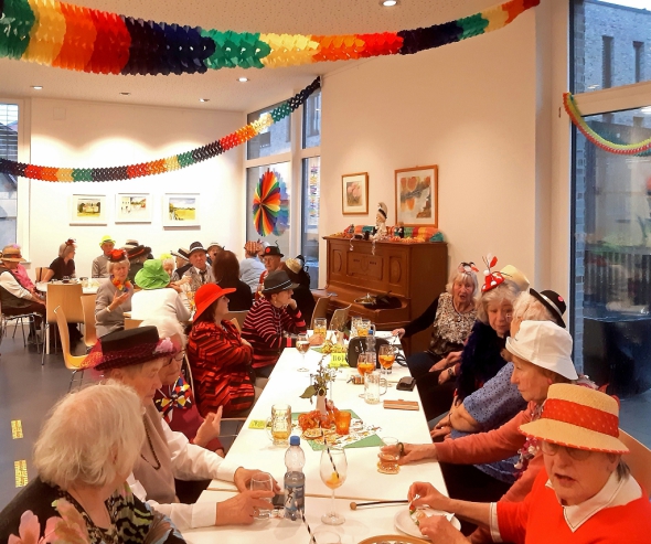 Am Rosenmontag hatten die Organisatoren des Bürger-Treff zu einem närrischen Nachmittag eingeladen. Unter dem Motto „Mut zum Hut“ sind viele Gäste der Einladung gefolgt. Vom Betreuungsteam wurde der Gastraum wunderschön mit Girlanden und Luftschlangen in ein närrisches Outfit versetzt. Herzlichen Dank den Damen dafür.